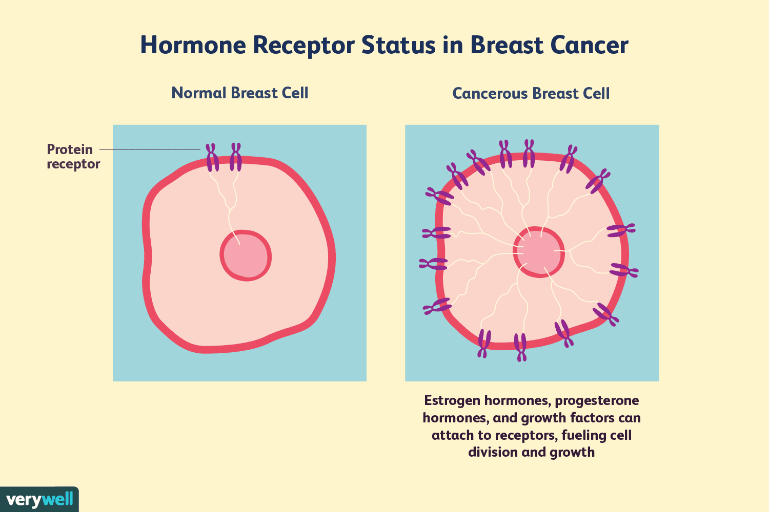 Some types of breast cancer are fueled by the hormones estrogen or progesterone. Your doctor will call these receptors -- they’re proteins that pick up signals from the hormone that tell cells to grow. A biopsy can show if a tumor has receptors for estrogen (it’s ER-positive) and progesterone (it’s PR-positive). About 2 out of 3 breast cancers are hormone sensitive. There are several medications that keep the hormones from causing further cancer growth.