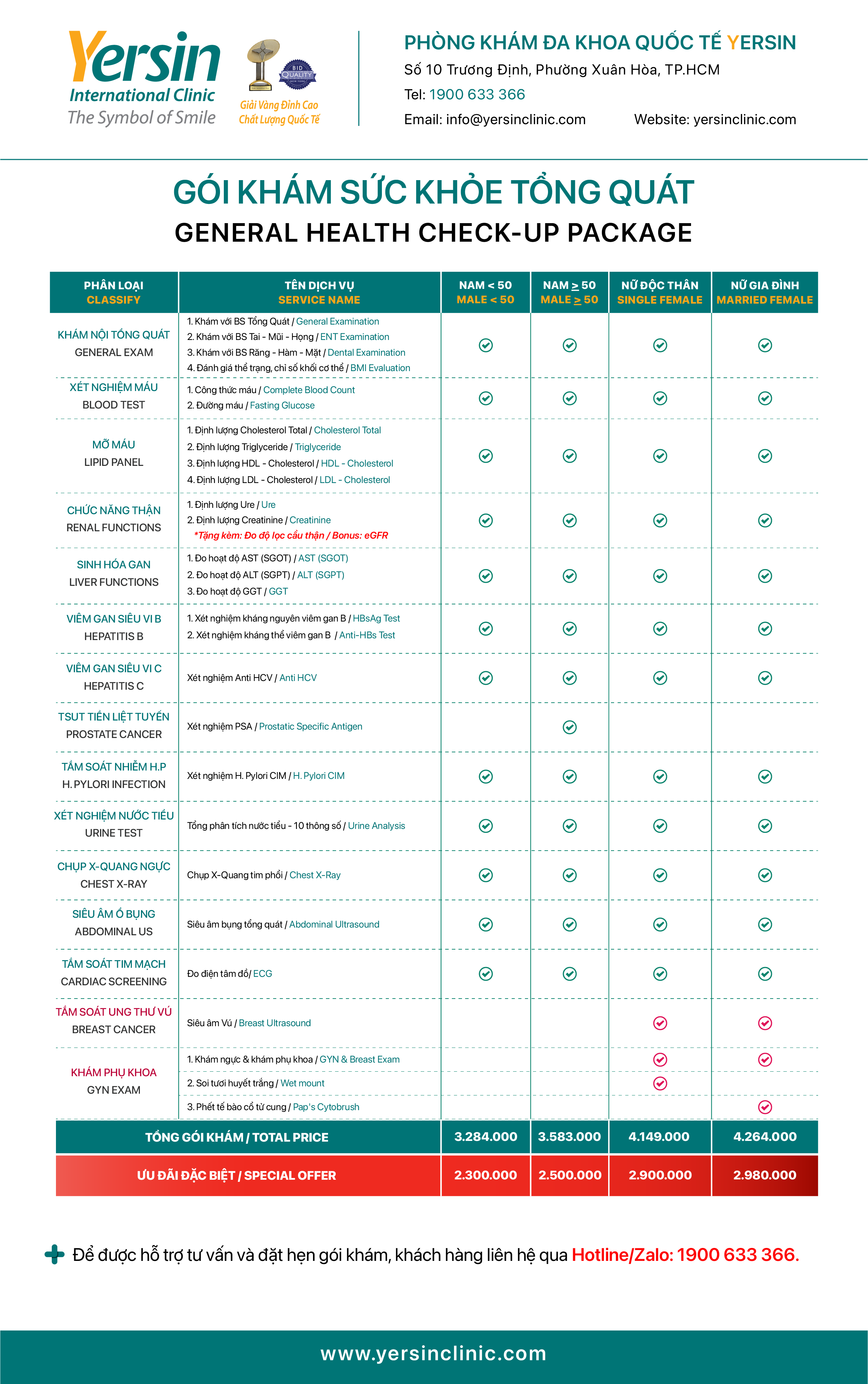 - Chương trình chỉ áp dụng cho khách hàng đặt lịch hẹn trước qua hotline 1900633366 và fanpage Yersin International Clinic
